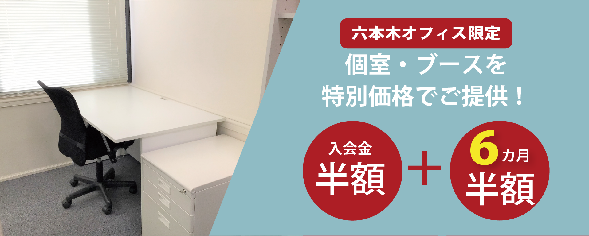 【六本木限定】個室・ブース6ヶ月半額キャンペーンは、12/31まで実施中です。