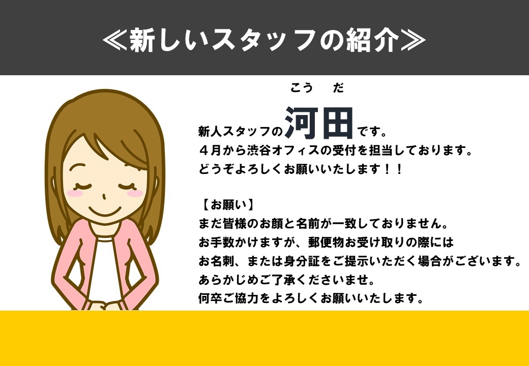 まだ新しい環境で仕事を覚えている最中ですのでオフィスにお越しの際は