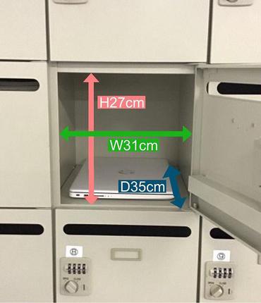 ▼渋谷ロッカーのサイズ(幅31cm×高さ27cm×奥行35cm)