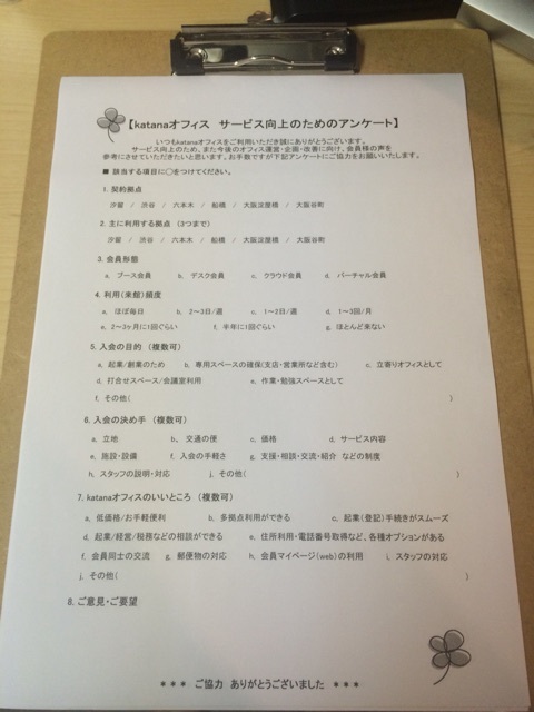 アンケートにご協力お願いします!(katanaオフィス全拠点で実施中)