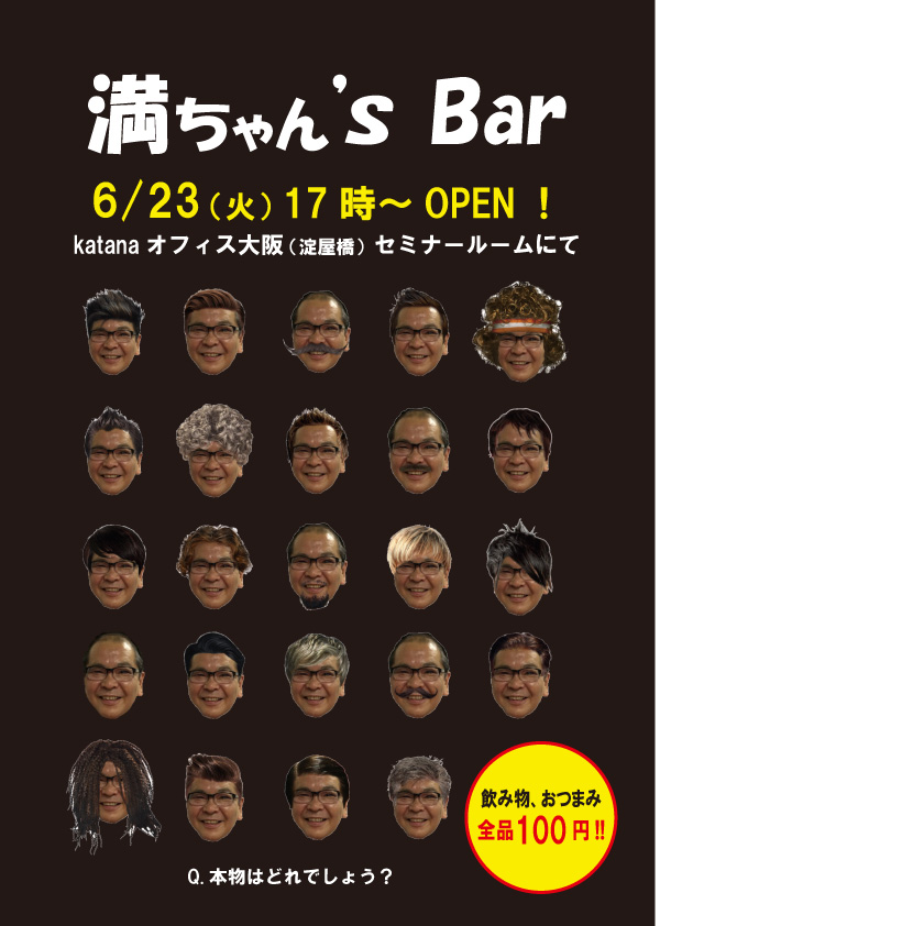 全品100円?! 『満ちゃん'S Bar』オープン!katanaオフィス大阪(淀屋橋)にて