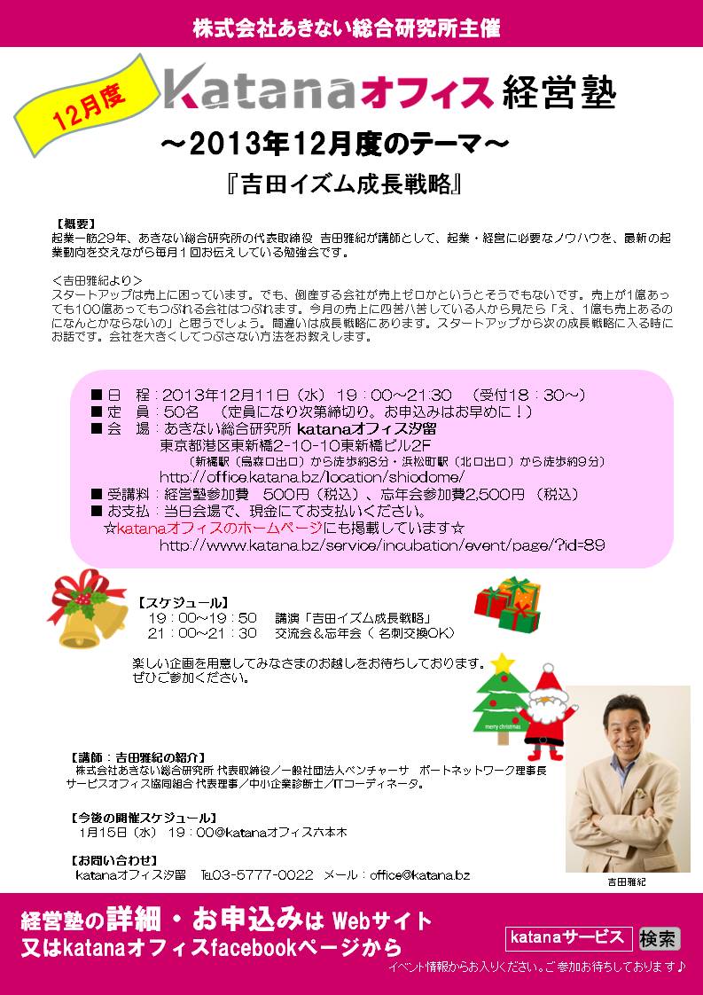 もう12月!今年最後の経営塾は12月11日(水)汐留オフィスで開催します^^