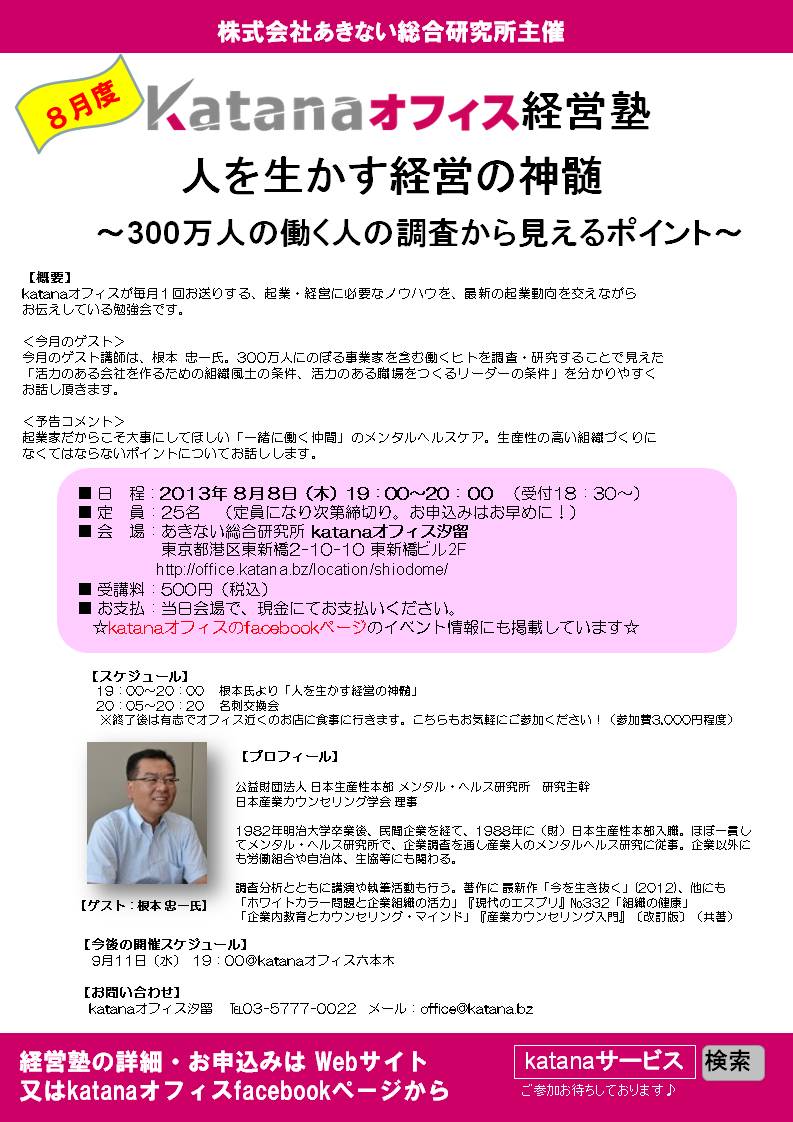 8月のテーマは『人を生かす経営の神髄~300万人の働く人の調査から見えるポイント~』