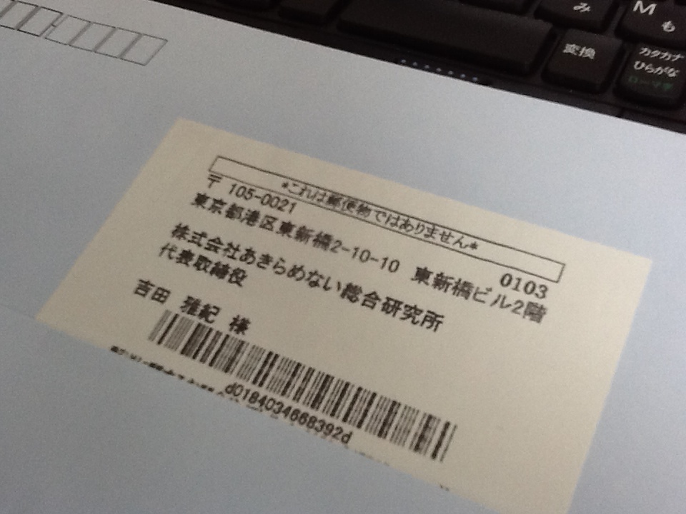弊社代表・吉田宛に届いたDM