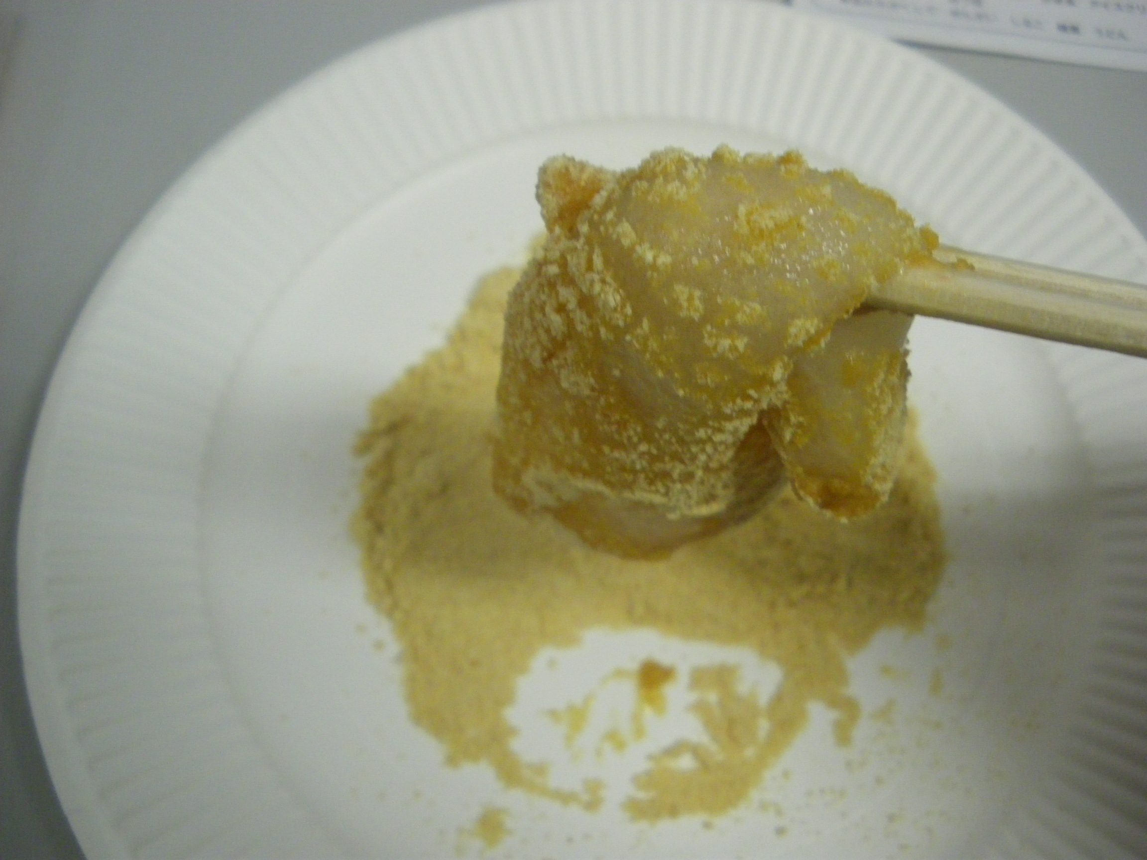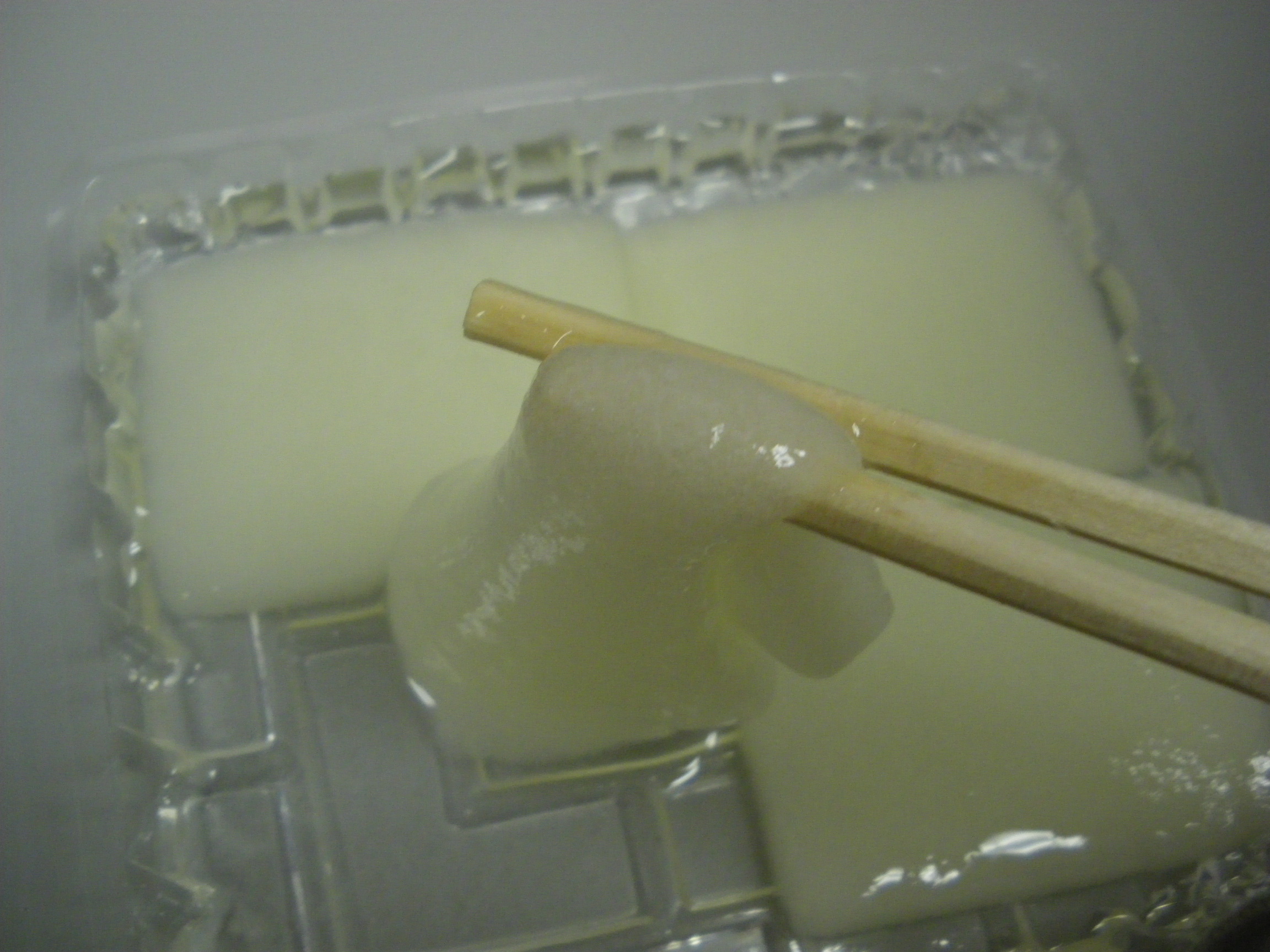 硬いお餅(軽石みたい)に水をかけて約30秒