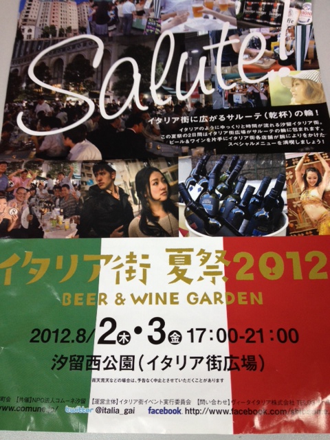 8/2(木)、8/3(金)男前コンテストやら、看板娘コンテスト、生ライブなど、企画盛りだくさんのようですよ☆ イタリア街のお店がたくさん出店して、おいしいお酒やお料理楽しみなお祭り。