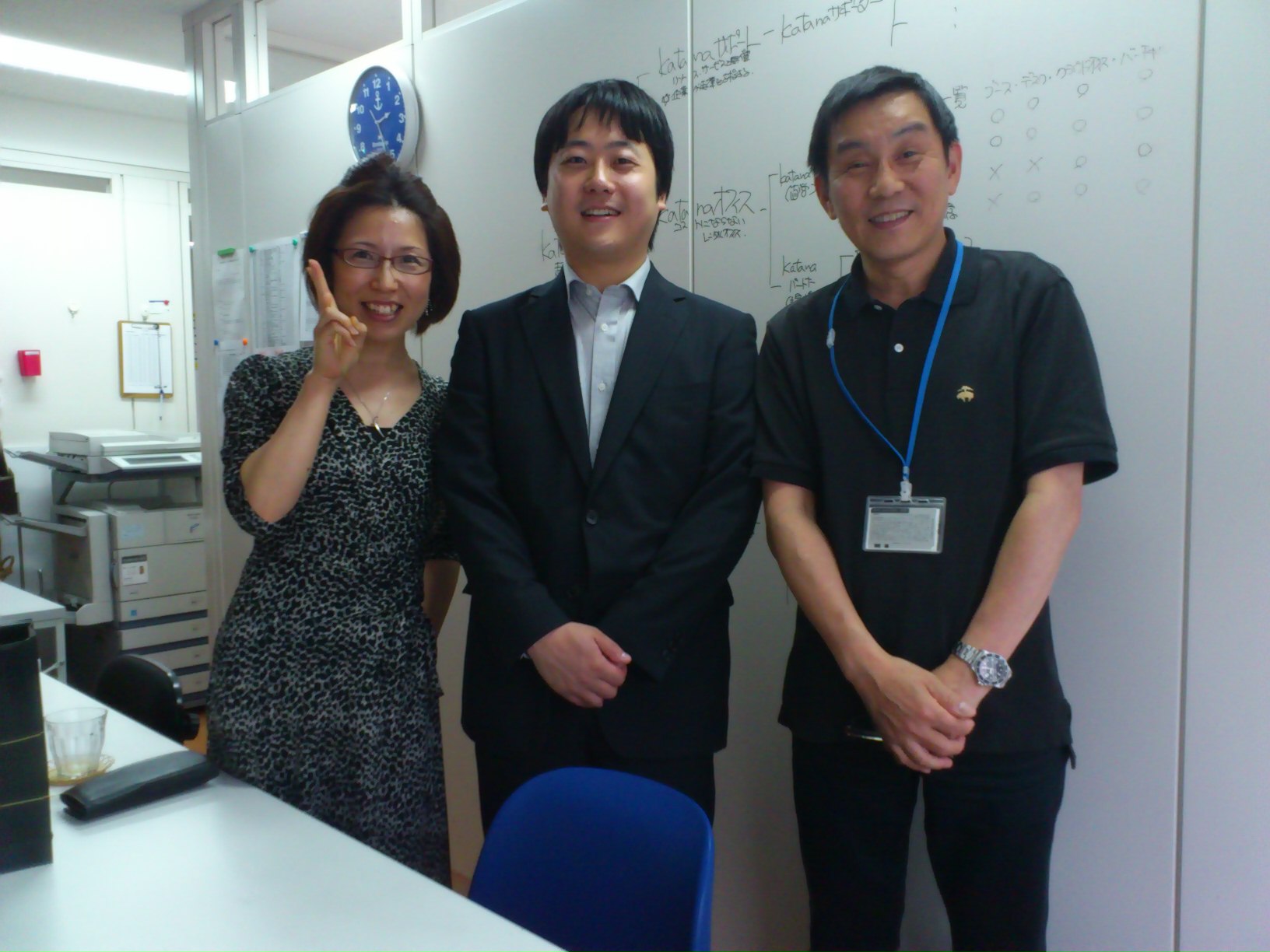 三宅君が汐留のkatanaオフィスに遊びにきました。新卒であきない総研に入って、2年?3年?転職して、今はコンサル会社にいます。相変わらずいじられキャラで楽しいいヤツです。お互いの事情であきない総研を卒業したメンバーもこうやって遊びに来てくれます。うれしいね。